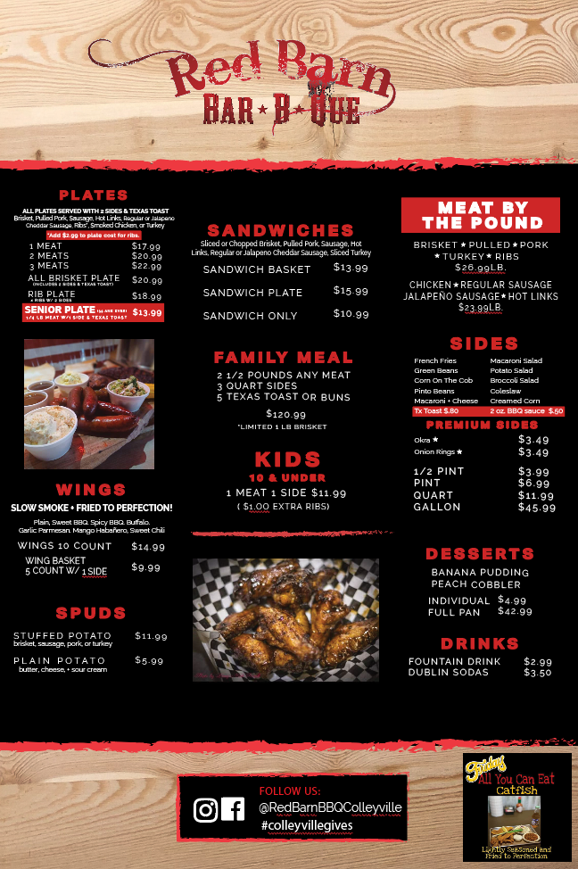 Red Barn BBQ has become a staple in Colleyville for not only food, but supporting our surrounding community. You can often find us hosting a fundraiser or inviting other local businesses into our restaurant.